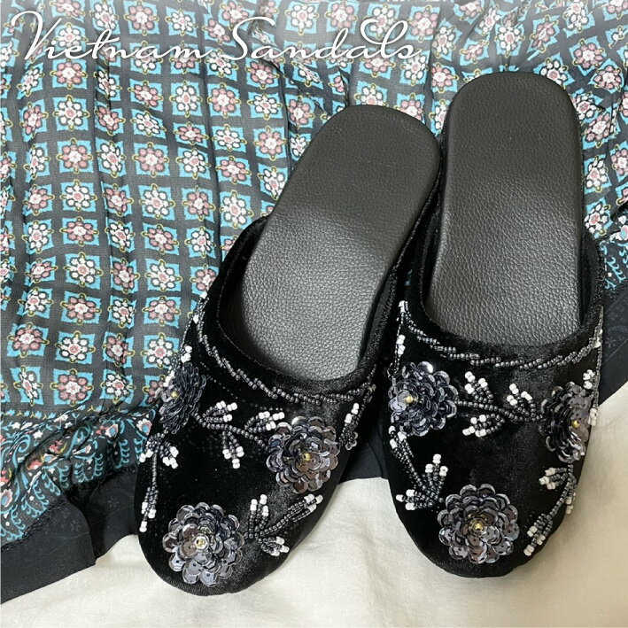 ベトナムサンダル ベトナムシューズ 刺繍サンダル ビーズ ベトナム サンダル ベトナム雑貨 アジアン雑貨 コンフォートサンダル サボサンダル ファッション ベロア スパンコール 軽い 軽量 スリッパ 室内外兼用 インスタ映え かわいい きれいめ 送料無料