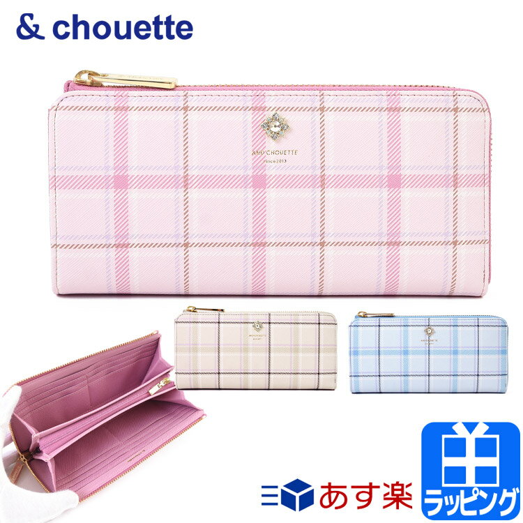 【5の倍数の日24時間限定P5倍】サマンサタバサ アンドシュエット シンプル 財布 L字ファスナー 長財布 チェックビジュー レザー 合皮【Samantha Thavasa &chouette レディース ブランド おしゃれ 正規品 新品 ギフト プレゼント】 [S]