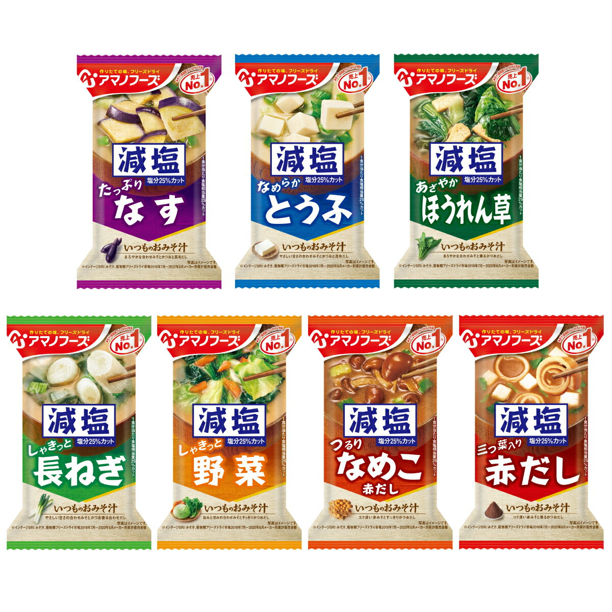 アマノフーズ フリーズドライ 減塩 いつもの 味噌汁 7種35食 詰め合わせ セット 【 送料無料 沖縄以外】 おみそ汁 インスタント食品 即席味噌汁 即席 お味噌汁 なす 野菜 みそ汁 備蓄 非常食 敬老の日 2021 内祝い ギフト